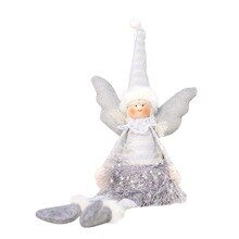 Siedzący anioł z wiszącymi nóżkami. Wypełniony pluszem, dla stabilizacji pozycji stojącej w tułowiu posiadają piasek,co dodatkowo je obciąża. Figurka ze sznurkiem, można ją powiesić.