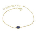BRANSOLETA SREBRNA 925, ZŁOCONA, AGAT GRANATOWY, 16+3CM