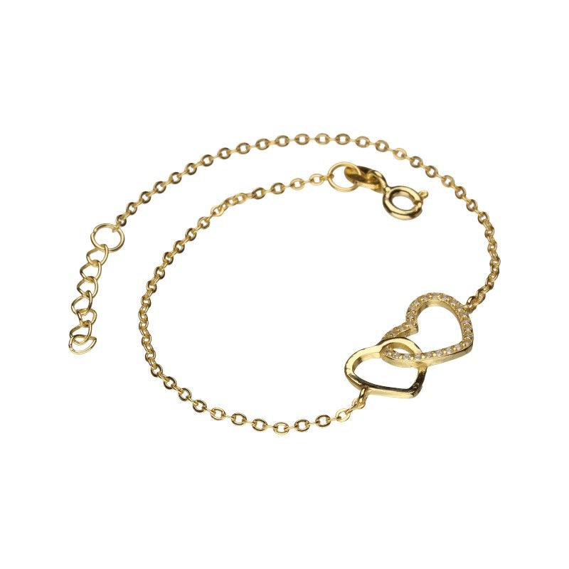 Bransoletka 2xSerce Cyrkonia Srebro 925 Pozłacane