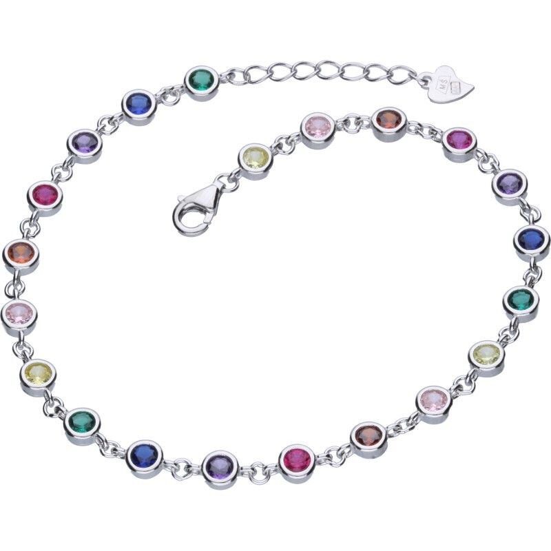 BRANSOLETKA, SREBRO PRÓBY 925 RODOWANE, DŁUGOŚĆ 18cm+2cm PRZEDŁUŻKA, KOLOROWE CYRKONIE O ŚREDNICY 4mm.