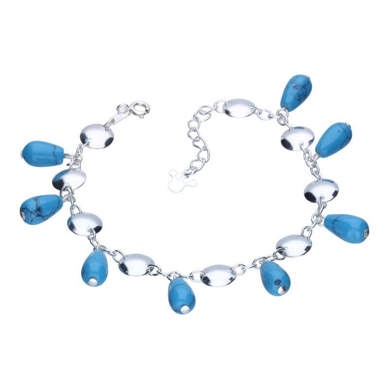 BRANSOLETA Z PODWIESZONYMI ELEMENTAMI, SREBRO PRÓBY 925 SREBRZONE, DŁUGOŚĆ 17cm+4cm PRZEDŁUŻKA, KAMIEŃ JUBILERSKI W KOLORZE TURKUSOWYM PLUS GŁADKIE KÓŁKA O ŚREDNICY 8mm, WAGA SAMEGO SREBRA BEZ KORALIKÓW 4,29gr.