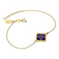BRANSOLETKA Z MOTYWEM KONICZYNY MAROKAŃSKIEJ, SREBRO PRÓBY 925 POZŁACANE 24 KARATOWYM ZŁOTEM, FASETOWANY KAMIEŃ W KOLORZE SZAFIRU, KONICZYNKA O WYMIARACH 14mm X 15mm, DŁUGOŚĆ BRANSOLETKI 17cm + 3cm PRZEDŁUŻKA.