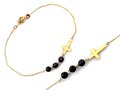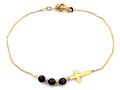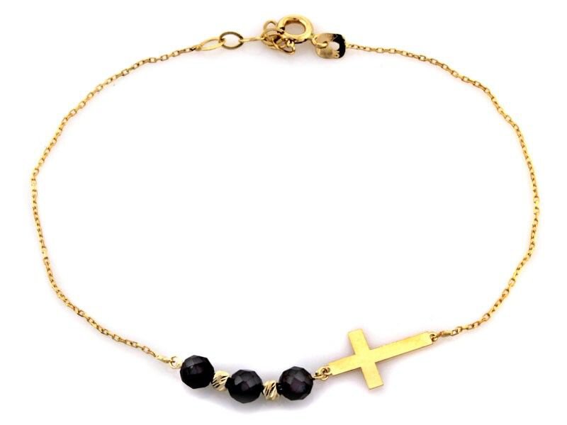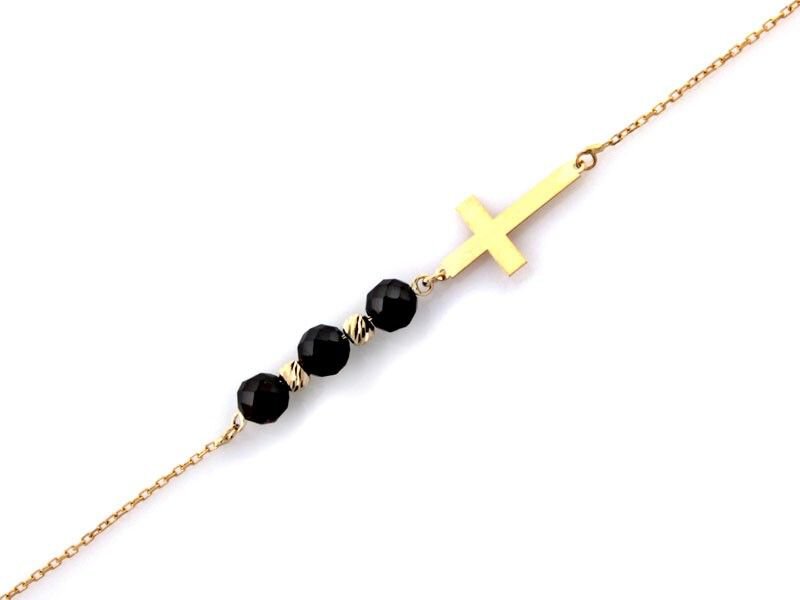 Bransoletka Złota Pr. 585 Krzyżyk i Trzy Czarne Kamienie