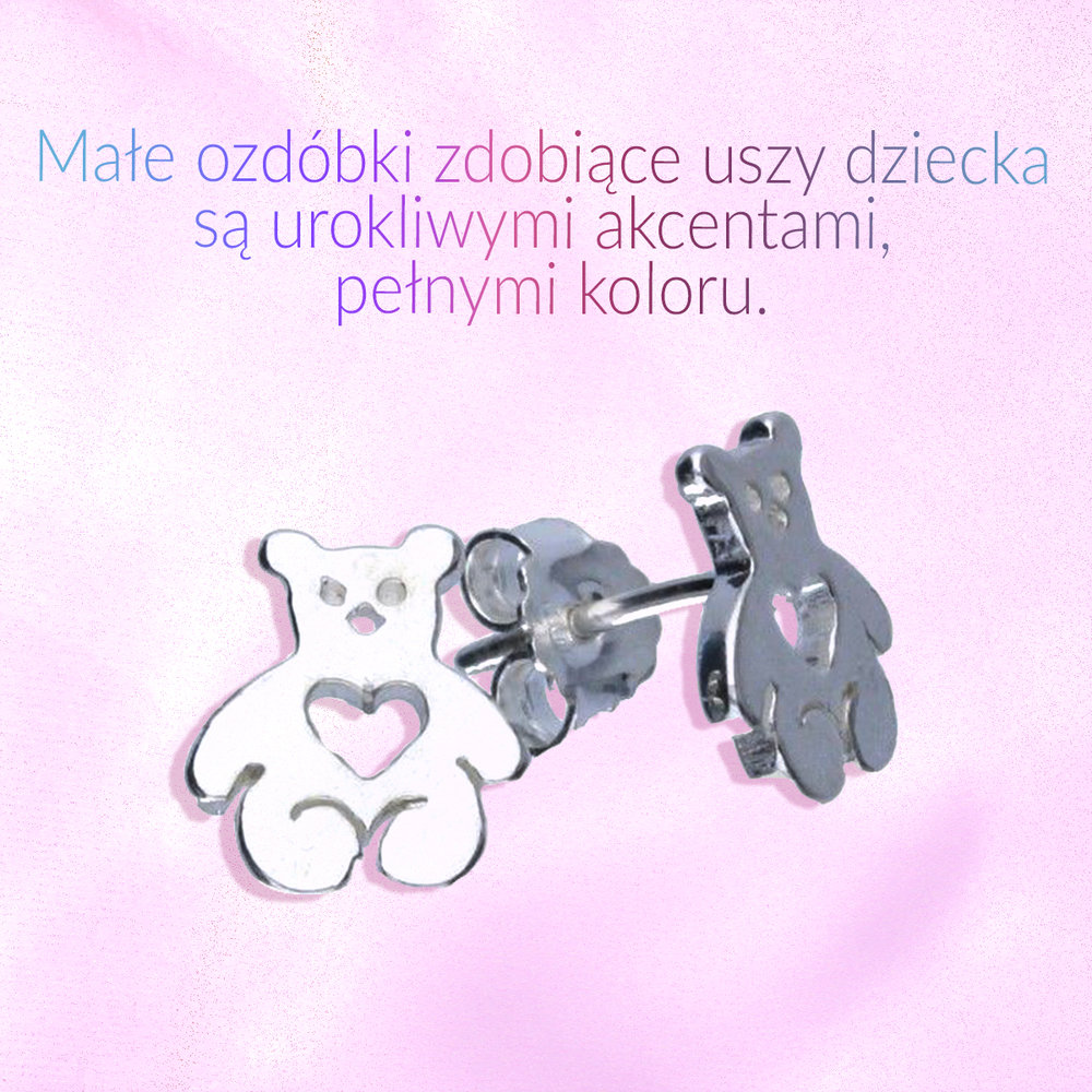 Ozdoby projektowane z myślą o najmłodszych zawsze są bardziej dopracowane pod względem wykończenia. Każdy, nawet najmniejszy element musi być zabezpieczony przed wypadnięciem. Tylko starannie zrealizowane projekty mogą być noszone przez dzieci. Jeśli mowa o wzorach, niesamowite wrażenie robi biżuteria z motywem zwierzątek. Dziewczęce motylki, kolorowe biedronki, zakręcone ślimaki czy rozśpiewane ptaszki zabawnie wyglądają w małych uszkach. Podobnie delfinki i misie, dodatkowo zdobione cyrkoniami. Młode damy uwielbiają błyszczeć, dlatego im więcej kamyczków lub innych błyskotek, tym ciekawsza biżuteria. Kolczyki dla dzieci mogą mieć formę ozdób na sztyfcie, który ściśle przylega do małżowiny lub na biglu, pozwalającym ozdobie powiewać na boki. Na szczególną uwagę zasługują te modele kolczyków, na których ręcznie namalowano wzorki, zwłaszcza detale, jak oczy zwierzaków.