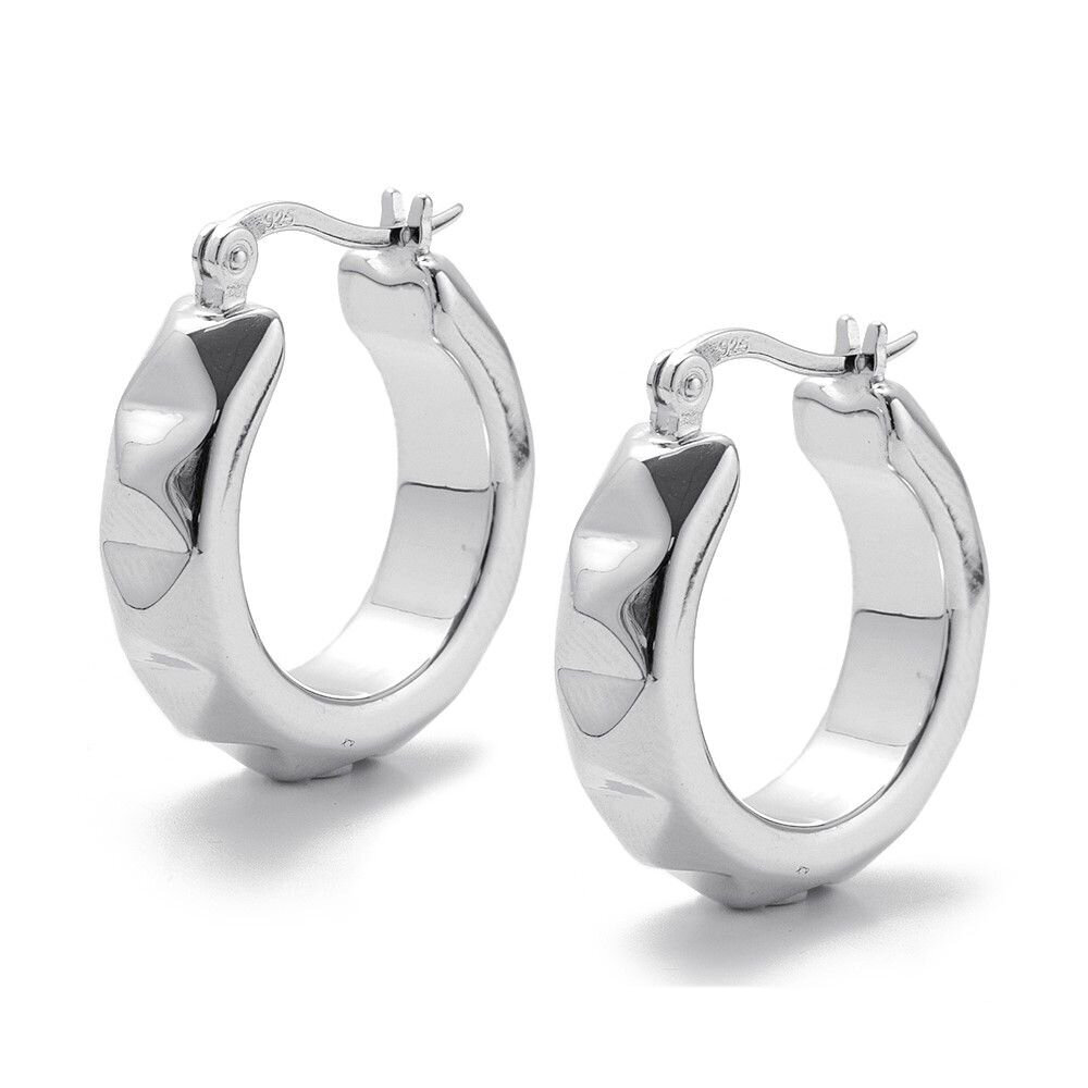 KOLCZYKI KOŁA WYTŁACZANE, SREBRO PRÓBY 925 RODOWANE, ŚREDNICA KOLCZYKÓW 23mm , SZEROKOŚĆ 6mm, ELEKTROFORMA.