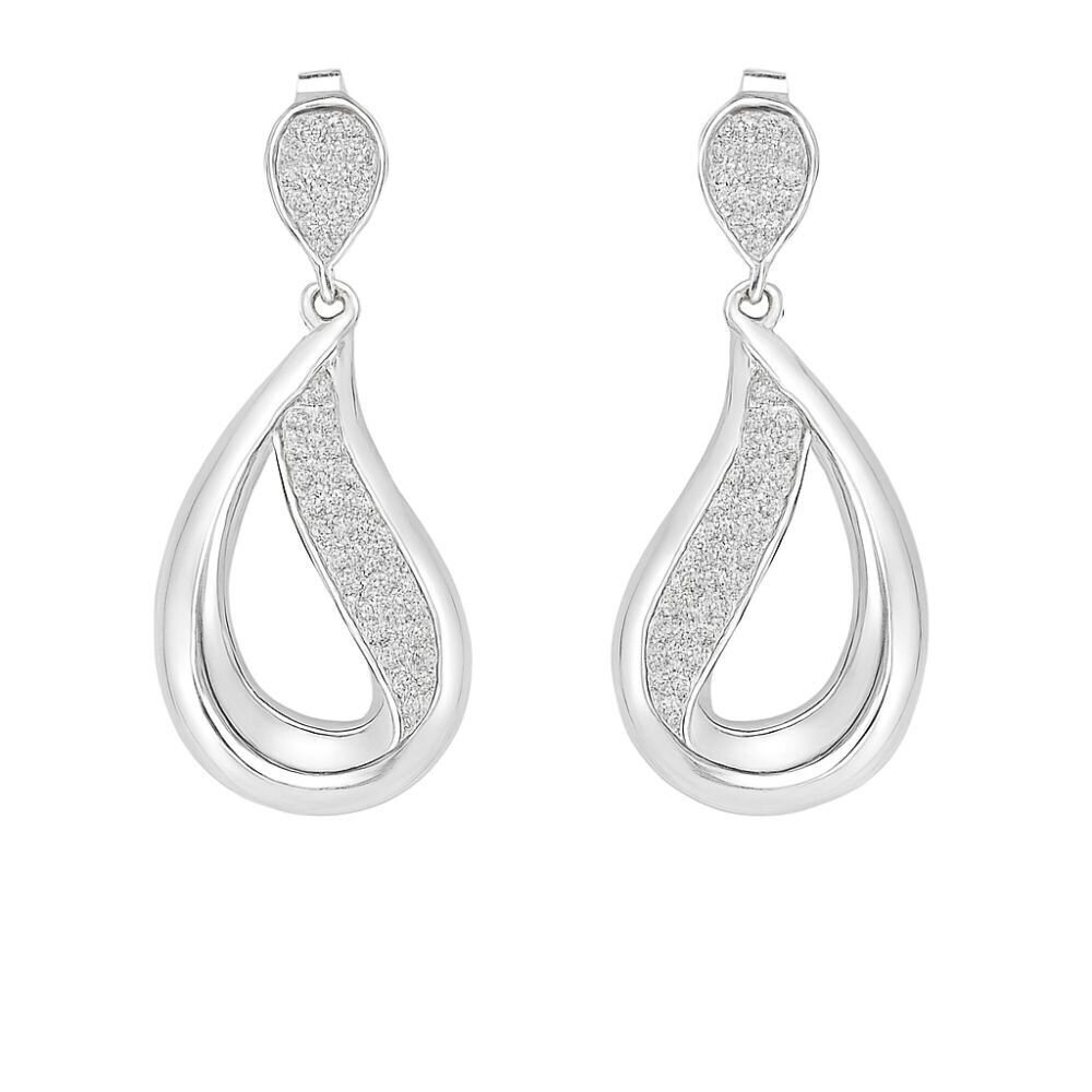 KOLCZYKI NA SZTYFCIE WISZĄCE, SREBRO PRÓBY 925 RODOWANE, BIAŁE CYRKONIE, KROPLA, KROPLE, MIGDAŁ, KOLCZYKI O WYMIARACH 15mm X 35mm, ELEKTROFORMA.