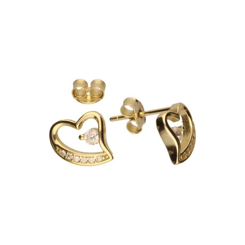 KOLCZYKI NA SZTYFCIE Z CYRKONIAMI, SREBRO PRÓBY 925 POZŁACANE 24 KARATOWYM ZŁOTEM, CYRKONIE W KOLORZE BIAŁYM, SERDUSZKO, SERCA, KOLCZYKI O WYMIARACH 9mm X 10mm.