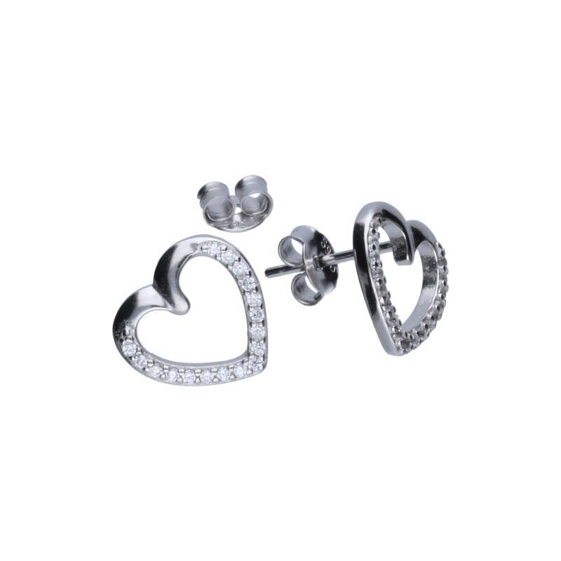 KOLCZYKI NA SZTYFCIE Z CYRKONIAMI, SREBRO PRÓBY 925 RODOWANE, CYRKONIE W KOLORZE BIAŁYM, SERDUSZKO, SERCA, KOLCZYKI O WYMIARACH 10mm X 11mm.