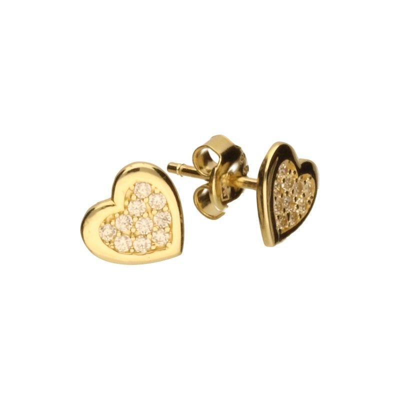 KOLCZYKI NA SZTYFCIE, ZŁOTO PRÓBY 585, SERCA Z BIAŁYMI CYRKONIAMI O WYMIARACH 7mm X 8mm, 14K.