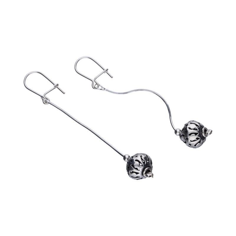 KOLCZYKI NA USZKU , DŁUGOŚĆ LINKI 6CM , SREBRO 925 , KULECZKI AŻUROWE OKSYDOWANE .