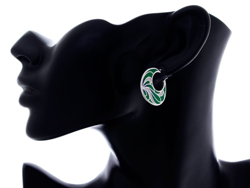 Kolczyki srebrne 925 rodowane koła z zieloną emalią