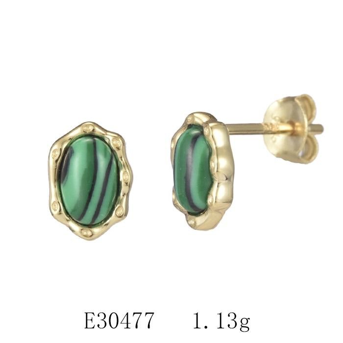 KOLCZYKI , SREBRO 925 ZŁOCONE, AGAT ZIELONY, 0,9CM
