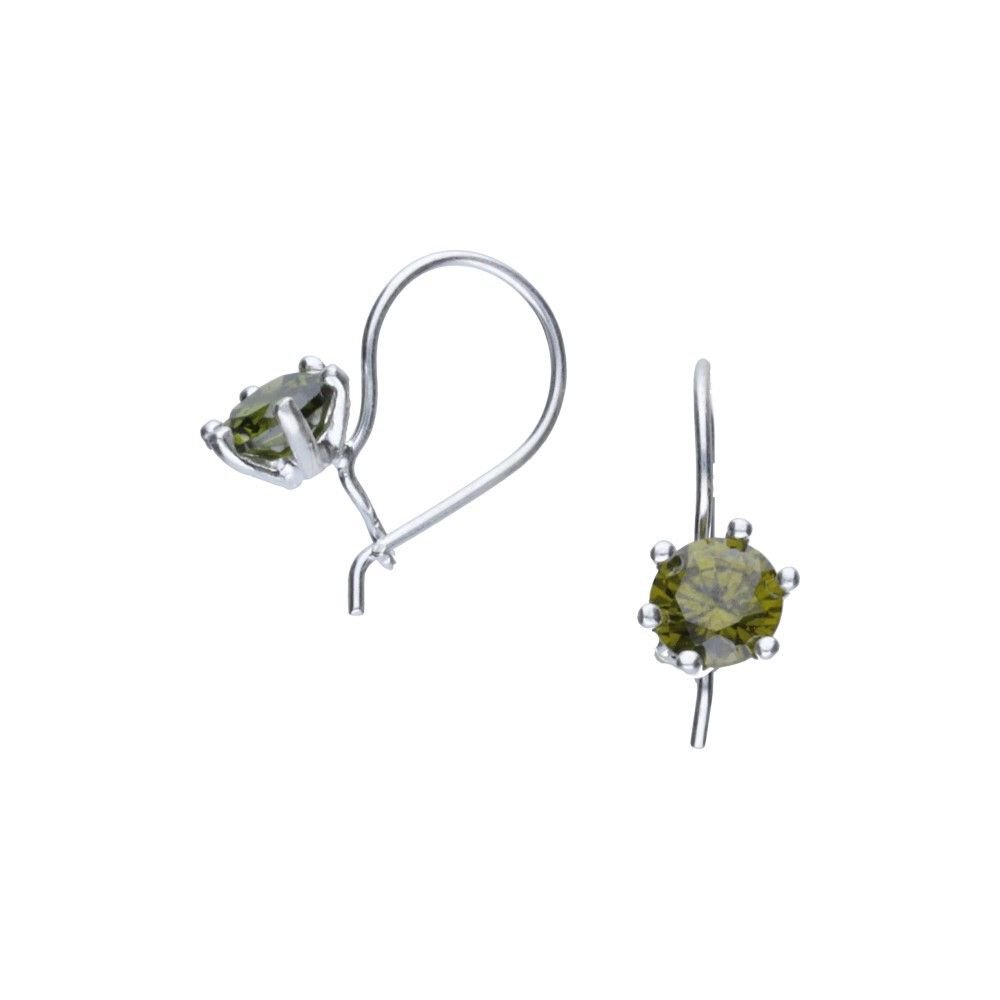 KOLCZYKI NA USZKU, SREBRO PRÓBY 925 SREBRZONE, OKRĄGŁA CYRKONIA W KOLORZE ZIELONYM 4mm.