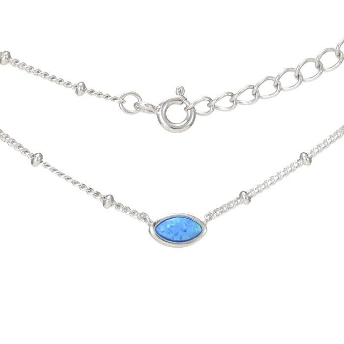 NASZYJNIK SREBRNY 925, RODOWANY, NIEBIESKI OPAL, 43CM+3CM