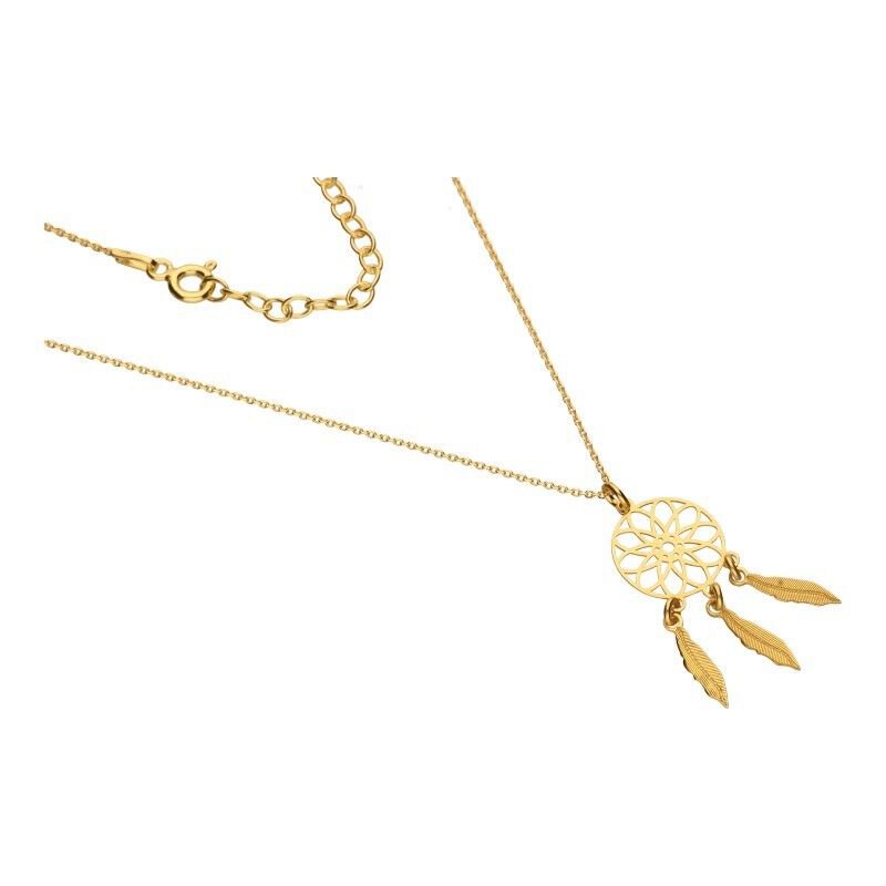 NASZYJNIK AŻUROWY, SREBRO PRÓBY 925 POZŁACANE 24 KARATOWYM ZŁOTEM, DŁUGOŚĆ 42CM+3CM PRZEDŁUŻKA, ŁAPACZ SNÓW, CATCHDREAMER, ŚREDNICA 12mm.