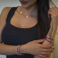 Nietuzinkowy naszyjnik typu choker. To kolejna odsłona popularnej kolekcji biżuterii celebrytek. Chokery to naszyjniki noszone blisko szyi. Srebrny łańcuszek został połączony wraz z kilkoma zawieszkami, dzięki czemu wyróżnia się oryginalnym wyglądem. Wszystkie elementy naszyjnika zostały wykonane ze srebra próby 925, pokryte dodatkowo warstwą rodu co sprawia, że biżuteria jest niezwykle trwała. Naszyjnik spodoba się kobietom podążającym za krzykiem mody. Doskonale uzupełni każdą stylizację – zarówno tę codzienną jak i wieczorową.