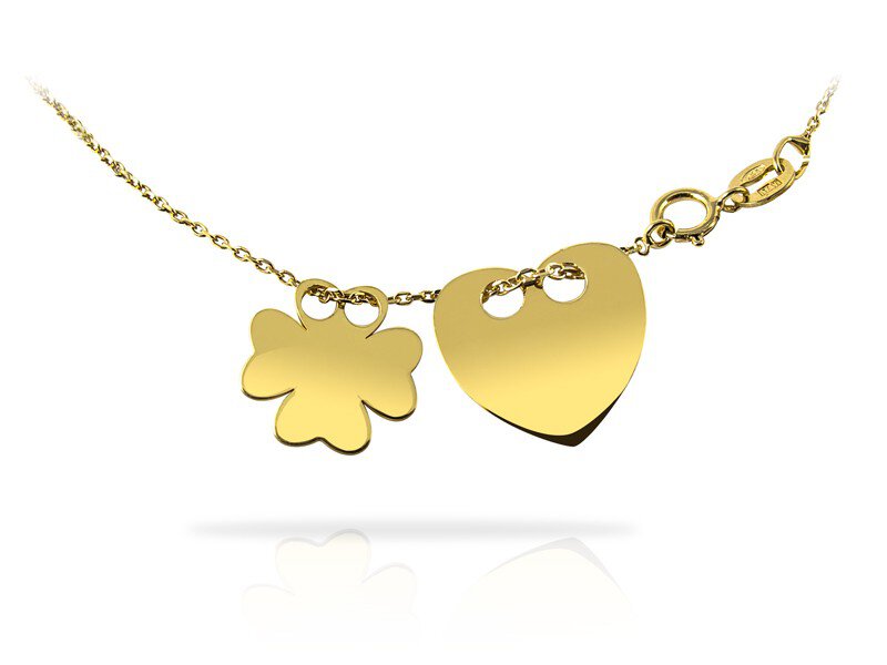 Naszyjnik z dwiema blaszkami. Powstał poprzez połączenie długiego, 42-centymetrowego łańcuszka z dwoma fantazyjnymi zawieszkami – jedna zawieszka w kształcie serca, druga przedstawia czterolistną koniczynkę. Podwójny naszyjnik wykonany został z wysokiej jakości srebra, które pokryte zostało złotem.