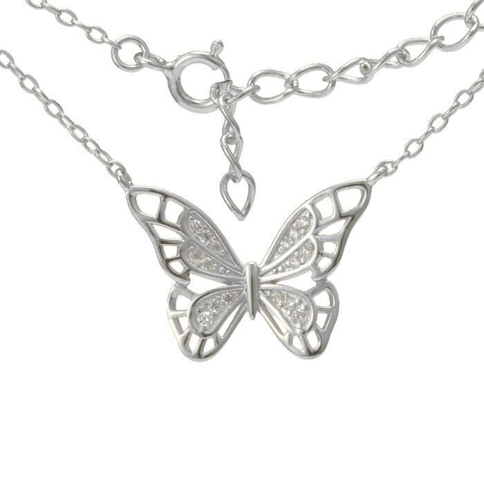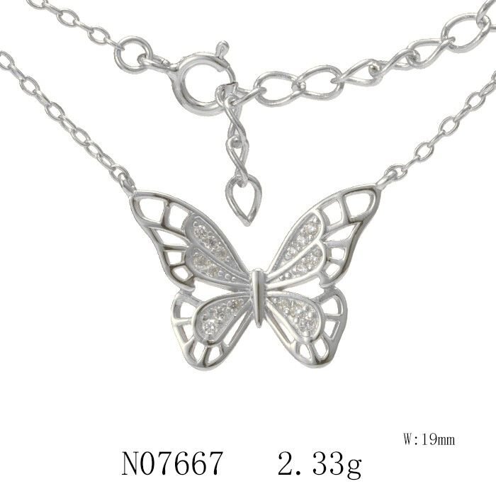 NASZYJNIK SREBRNY 925, RODOWANY, MOTYL WIELKOŚCI 2CMX1,6CM, 42CM+3CM