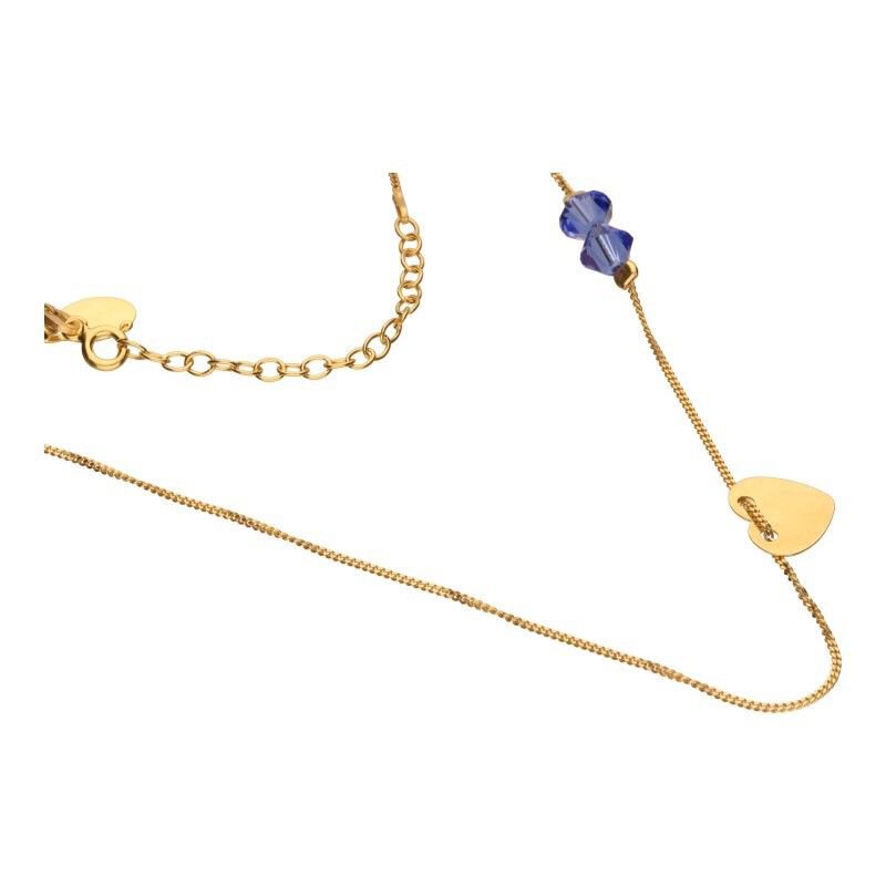 NASZYJNIK, SREBRO PRÓBY 925 POZŁACANE 24 KARATOWYM ZŁOTEM, SPLOT ŁAŃCUSZKA PANCERKA, DŁUGOŚĆ 37,5cm+5cm PRZEDŁUŻKA, DWA KRYSZTAŁKI SWAROVSKIEGO W KOLORZE SZAFIROWYM,GŁADKIE SERCE O WYMIARACH 11mmX11mm, MECHANICZNIE POLEROWANY.