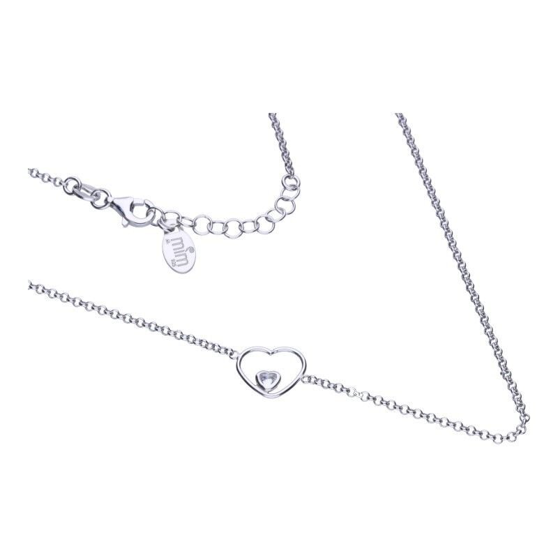 NASZYJNIK NA ŁAŃCUSZKU TYPU ROLLO, SREBRO PRÓBY 925 RODOWANE, DŁUGOŚĆ 42cm+3cm PRZEDŁUŻKA, BIAŁA CYRKONIA, SERCE O WYMIARACH 10mm X 12mm.