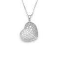 NASZYJNIK Z AŻUROWYM SERCEM, SREBRO PRÓBY 925 RODOWANE, DŁUGOŚĆ ŁAŃCUSZKA 42cm+3cm PRZEDŁUŻKA, BIAŁE CYRKONIE, SERCE O WYMIARACH 17mm X 20mm.