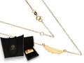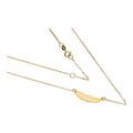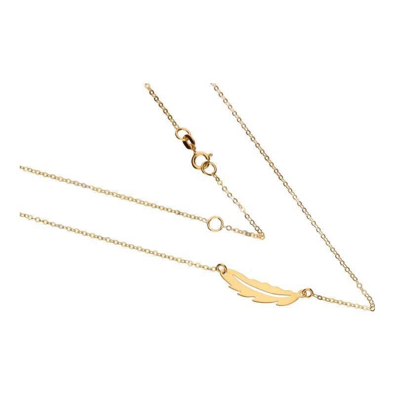 Subtelny, złoty naszyjnik pochodzący z włoskiej kolekcji biżuterii Celebrity liteGOLD. Naszyjnik składa się z wytrzymałego łańcuszka wraz z zawieszką piórkiem. Wykonanie ze złota próby 585 oraz ręczne polerowanie zagwarantuje nie tylko zniewalający blask ale również wysoką trwałość naszyjnika. To świetna propozycja dla kobiet, które chcą podkreślić swoje naturalne piękno. Idealny pomysł na prezent.
