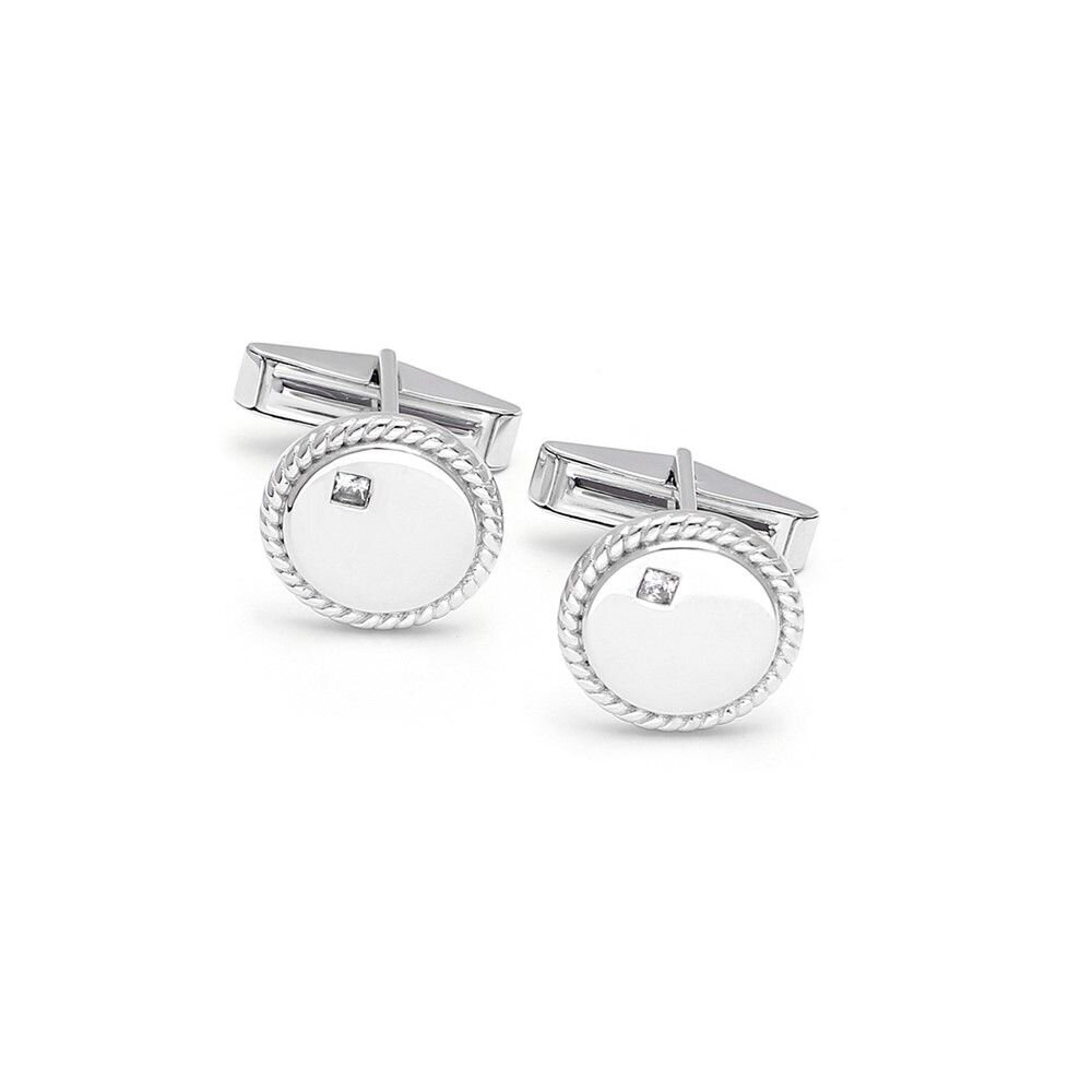 SPINKI DO MANKIETÓW, SREBRO PRÓBY 925 RODOWANE, BIAŁE CYRKONIE, ŚREDNICA SPINEK 15mm.