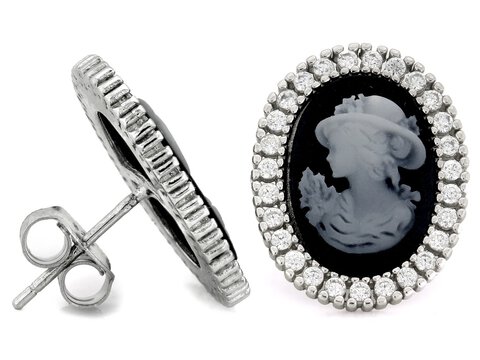 Srebrne kolczyki 925 Dama Kameliowa na czarnym tle owalne duże