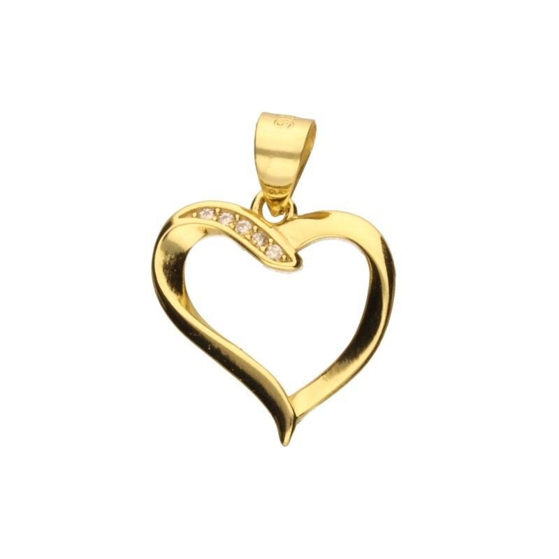 ZAWIESZKA AŻUROWA SERCE, SREBRO PRÓBY 925 POZŁACANE 24 KARATOWYM ZŁOTEM, BIAŁE CYRKONIE, WYMIARY ZAWIESZKI BEZ KRAWATKI 15mm X 16mm.