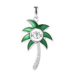 ZAWIESZKA, SREBRO 925, RODOWANE , BIAŁE CYRKONIE, ZIELONA EMALIA, PALMA