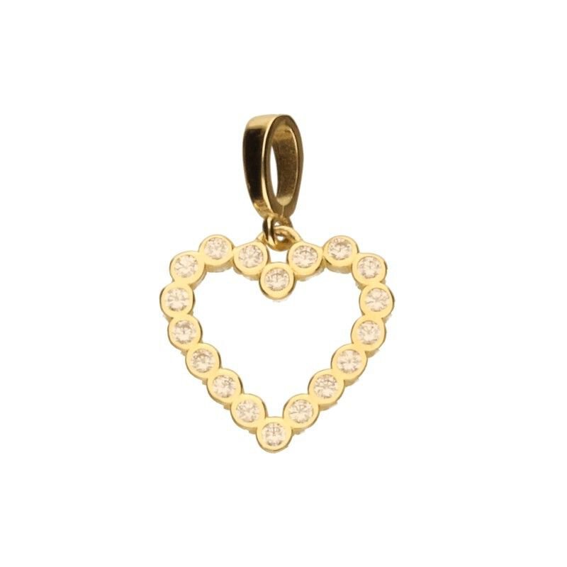 ZAWIESZKA SERCE, ZŁOTO PRÓBY 585, BIAŁE CYRKONIE, WYMIARY ZAWIESZKI BEZ KRAWATKI 12mm X 12mm, 14K.