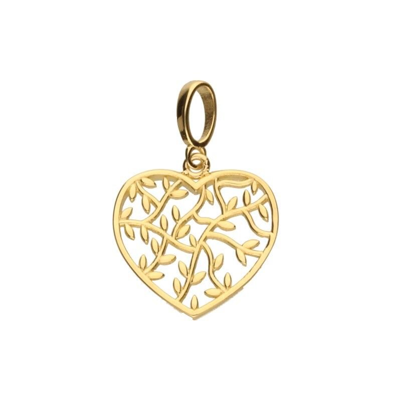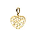ZAWIESZKA SERCE AŻUROWE, ZŁOTO PRÓBY 585, WYMIARY ZAWIESZKI BEZ KRAWATKI 13mm x 13mm, GAŁĄZKI, LISTKI, 14K.