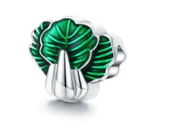 ZAWIESZKA TYPU BEAD PASUJĄCA NA BRANSOLETY MODUŁOWE O ŚREDNICY MAX 3mm, SREBRO PRÓBY 925 RODOWANE, ZIELONA EMALIA, DRZEWKA, DRZEWA, KORALIK O WYMIARACH 12mm X 12mm.