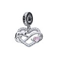 ZAWIESZKA WISZĄCA TYPU BEAD PASUACA DO BRANSOLET MODUŁOWYCH O ŚREDNICY MAX 3mm, SREBRO PRÓBY 925 RODOWANE, BIAŁE I RÓŻOWE CYRKONIE, KOTEK, NIESKOŃCZONOŚĆ, SERCE, WYMIARY ZAWIESZKI 13mm X 17mm.