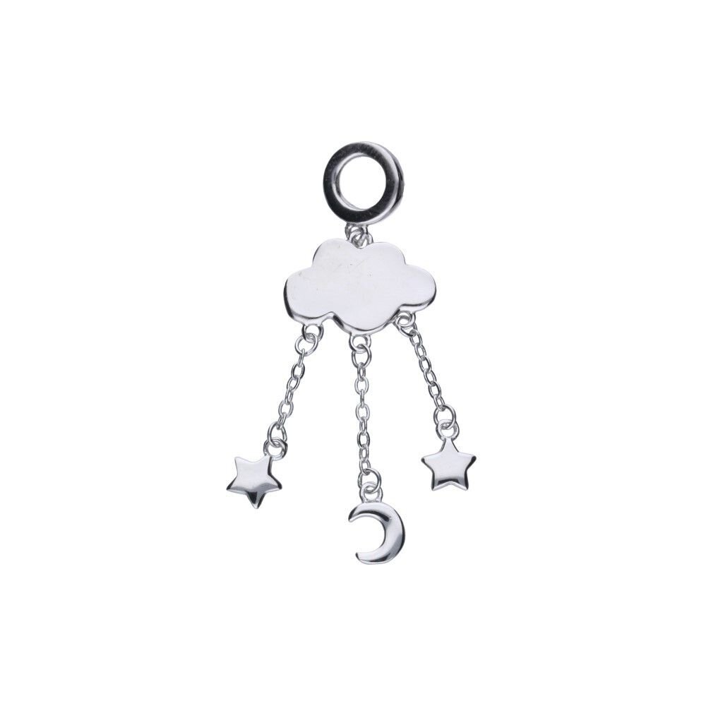 ZAWIESZKA WISZĄCA TYPU BEAD PASUJĄCA NA BRANSOLETY MODUŁOWE O ŚREDNICY 3mm, SREBRO PRÓBY 925 RODOWANE, , GWIAZDKI, KSIĘŻYC, OBŁOCZEK, CHMURKA O WYMIARACH 9mm X 14mm.