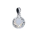 ZAWIESZKA Z KAMIENIEM NATURALNYM, SREBRO PRÓBY 925 SREBRZONE, OPAL OPRAWIONY W OZDOBNĄ AŻUROWĄ RAMKĘ, ŚREDNICA ZAWIESZKI 12mm.