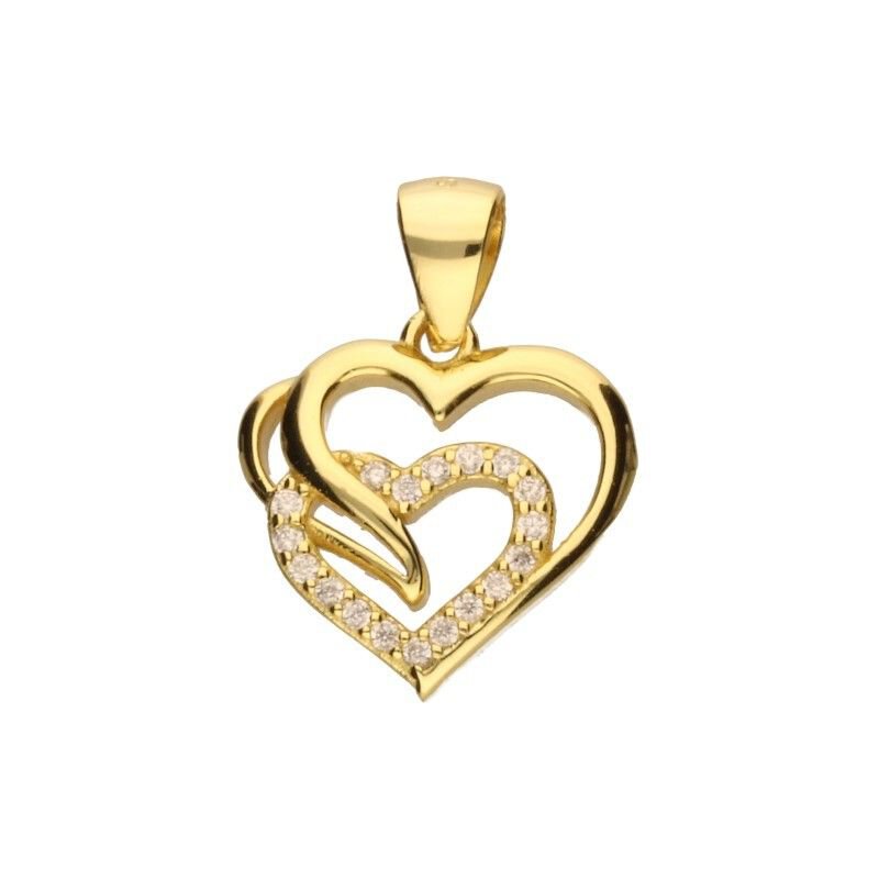 ZAWIESZKA SERCA AŻUROWE, SREBRO PRÓBY 925 POZŁACANE 24 KARATOWYM ZŁOTEM, BIAŁE CYRKONIE, SERCE, SERDUSZKA, WYMIARY ZAWIESZKI BEZ KRAWATKI 15mm X 16mm.