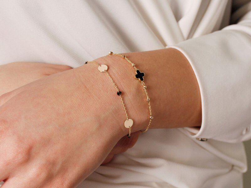 Złota bransoletka próba 375 Kulki i Czarny Kwiatek