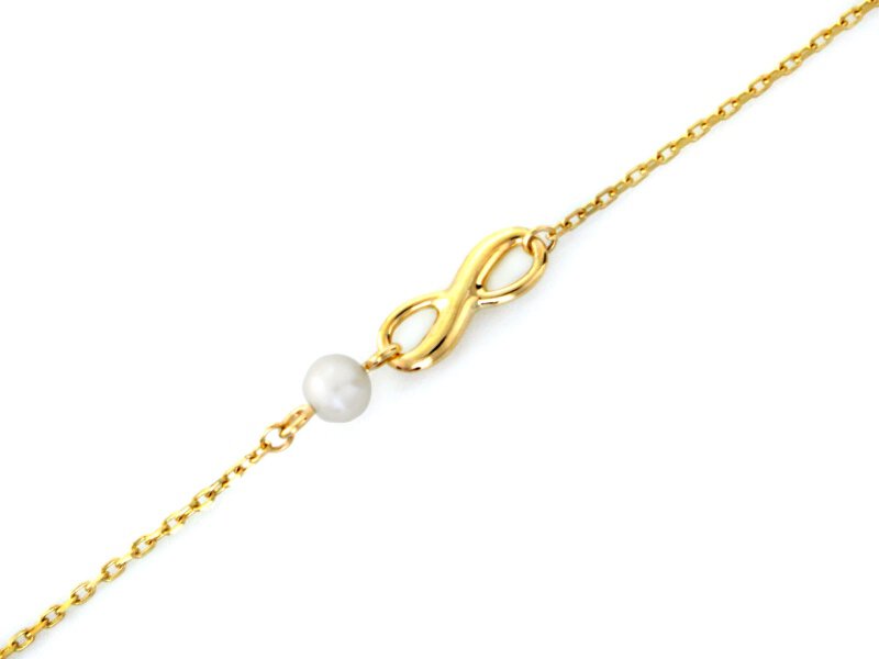 Złota bransoletka próba 375 Nieskończoność z Perełką