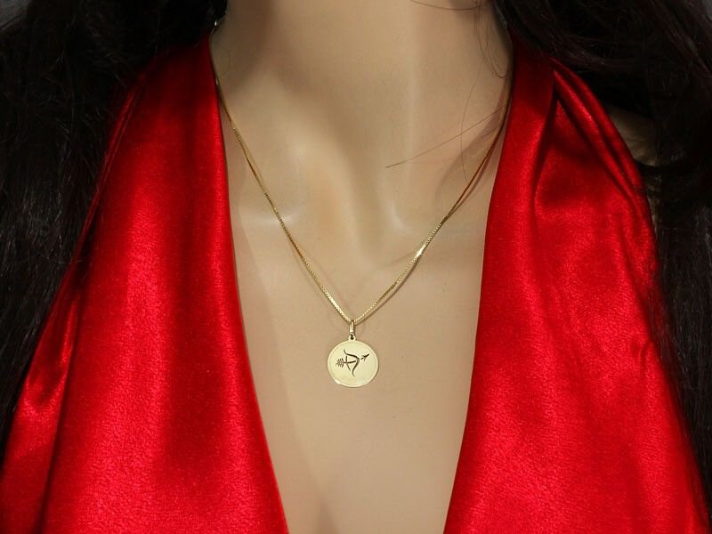 Niepowtarzalna zawieszka w kształcie kółka ze znakiem zodiaku STRZELEC. Całość została wykonana ze złota 585, dzięki czemu zachwyca jakością i wdziękiem. Świetna propozycja na prezent. Ta nietuzinkowa zawieszka będzie doskonałym uzupełnieniem codziennych jak i wieczorowych stylizacji.