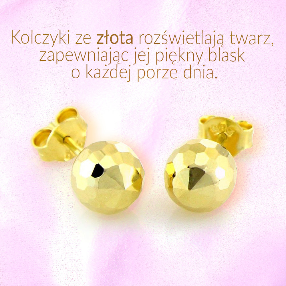 Kolczyki ze złota rozświetlają twarz, zapewniając jej piękny blask o każdej porze dnia. Złoto mieni się w świetle dziennym, ale równie dobrze prezentuje się w pomieszczeniach. Biżuteria do uszu powinna być nieodłącznym elementem stylizacji każdej kobiety. Namawiamy wszystkie panie, aby wychodząc z domu, pamiętać o kolczykach tak samo, jak o telefonie komórkowym i kluczach do domu. Uczyńcie złote kolczyki swoim ulubionym rodzajem biżuterii codziennej!